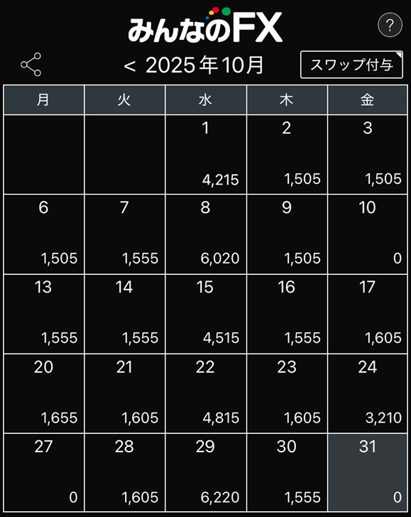 評価損益合計から累計スワップ分が減少し、累計スワップは0になりました。