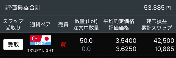 11月3~7日:10,885 円 X Facebook はてブ LINE Pinterest コピー 2025.11.082026.01.10 目次 週間スワップ:10,885 円評価損益:53,385円稼ぐ方法は 週間スワップ:10,885 円 今週は、木曜日に2日分となり金曜日は0でした。 3 (月)4 (火)5 (水)6 (木)7 (金)1,555 円1,555 円4,665 円3,110 円0 円 評価損益:53,385円 ・少し円高方向へ戻し、評価益が 42,500円となりました。・累計スワップは、11月1日からの1週分となっています。 本日 01月10日(土) の評価損益合計はこちら➡ 稼ぐ方法は ポジションを保有しているだけ。詳しくはこちら➡