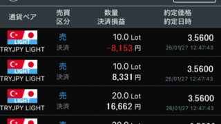 週間スワップ:10,662 円・スワップ額が下がっており、ロット増額でトントンです。評価損益:10,920円・少し円安方向に動いたので、建玉損益が 10,662円とプラスに戻りました。・累計スワップは、1月27~30日まで6日分となっていま...