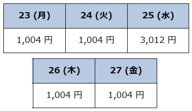 | 1,004 円 | 1,004 円 | 3,012 円 | 1,004 円 | 1,004 円 |