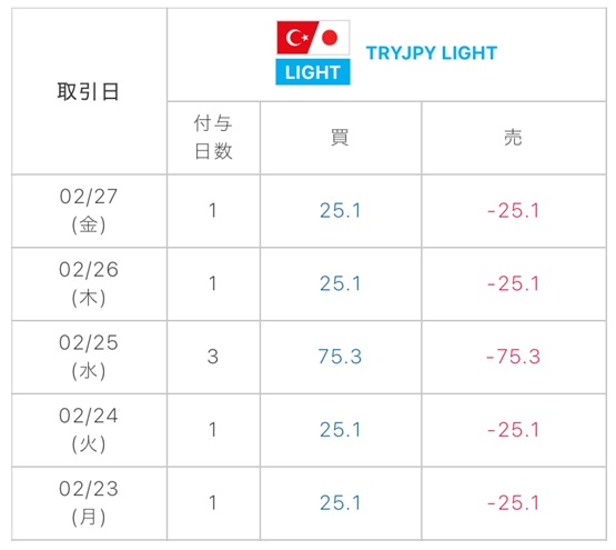 ・スワップ計算は、24.2x30+(-126×0.5)=663となっています。