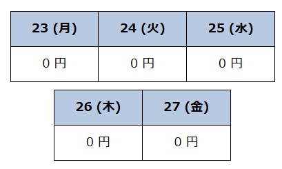 | 0 円 | 0 円 | 0 円 | 0 円 | 0 円 |